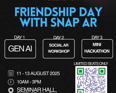 Join us for an engaging workshop on Gen AI, Snap AR, and a mini hackathon to celebrate friendship day.